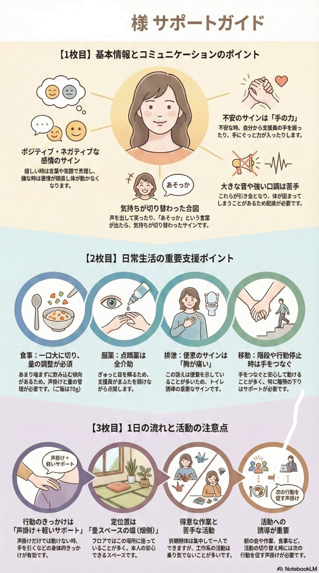 視覚的な情報共有は、スタッフ間のやり取りをスムーズにし、利用者さんへの理解度も高める。